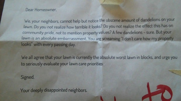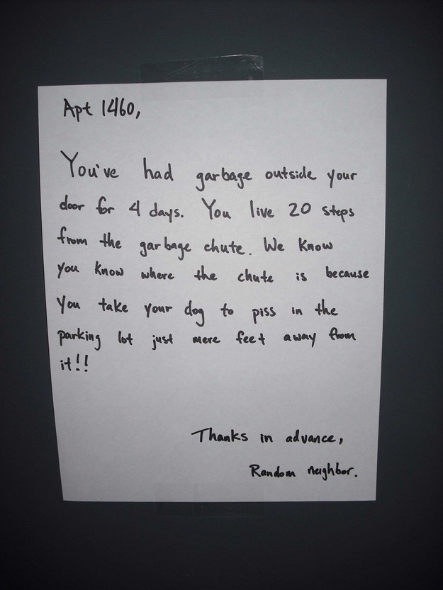 If you thought those brutally honest notes from kids were bad, these passive-aggressive neighbors take it another level. Head over to Twenty Two Words for even more hilarity: