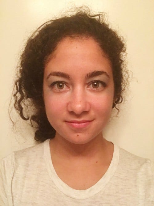 At this point, my boyfriend was totally over my makeup supplies (or lack thereof) and decided to beautify me using Photoshop. He tamed my brows, added a pink lip and eye shadow, and highlighted my cheeks. And apparently, he also decided he doesn't like my natural eye color, so he changed them from green to brownish.