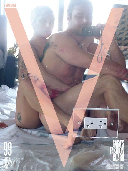 Lady Gaga and Taylor Kinney posed forV Magazine by taking a selfie of them covered in paint, post-coitus. The couple literally made love on a canvas.