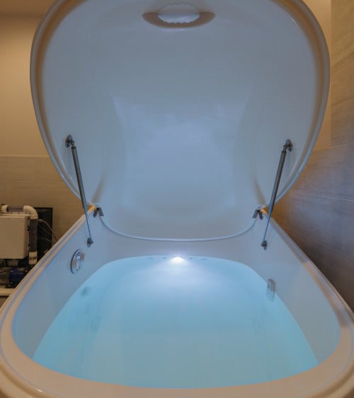 The concept is simple: You go into a private room, undress and shower, then climb into a large pod full of highly-salinated water. You close the lid (don't worry claustrophobes, it doesn't lock), push a button for music and another for a light if you want them, lay back, and float away in the darkness.
