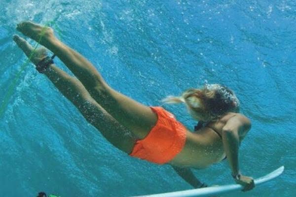 Relatively, there aren't a whole ton of women surfers out there, so you know that this woman must be totally bad-ass. She's a total trailblazer, and there's nothing a strong man likes better than a woman who can hold her own ... even in a line-up full of guys.