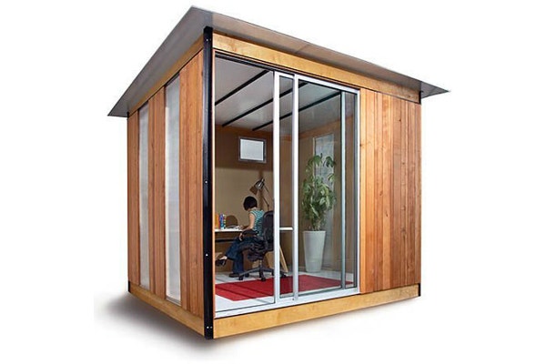 If you're looking for a backyard getaway or a home office, Modern Spaces has the shed for you. The simple and basic form is practical. Prices start at $6,000 for a fully installed room with a foundation and a finished exterior. Alternative uses include love shack, pool house, or extra fancy gardening shed.