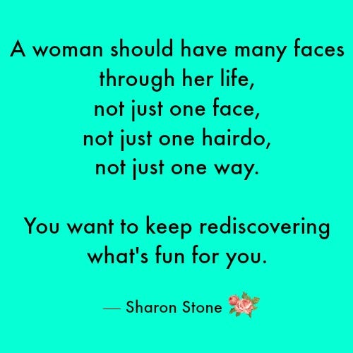 12. "A woman should have many faces through her life, no just one face, not just one hairdo, not just one way. You want to keep rediscovering what's fun for you." —Sharon Stone