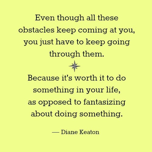 14. "Even though all these obstacles keep coming at you, you just have to keep going through them. Because it's worth it to do something in your life, as opposed to fantasizing about doing something." —Diane Keaton