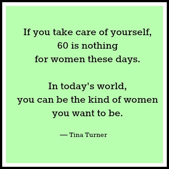 2. "If you take care of yourself, 60 is nothing for women these days. In today's world, you can be the kind of women you want to be." —Tina Turner