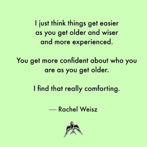 20. "I just think things get easier as you get older and wiser and more experienced. You get more confident about who you are as you get older. I find that really comforting." —Rachel Weisz