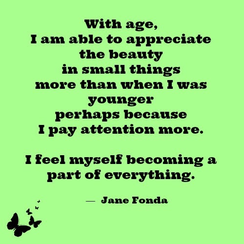 6. "With age, I am able to appreciate the beauty in small things more than when I was younger perhaps because I pay attention more. I feel myself becoming a part of everything." —Jane Fonda