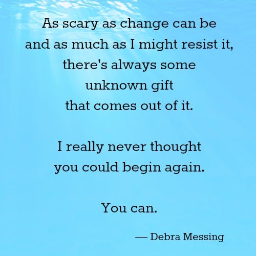 7. "As scary as change can be and as much as I might resist it, there's always some unknown gift that comes out of it. I really never thought you could begin again. You can." —Debra Messing