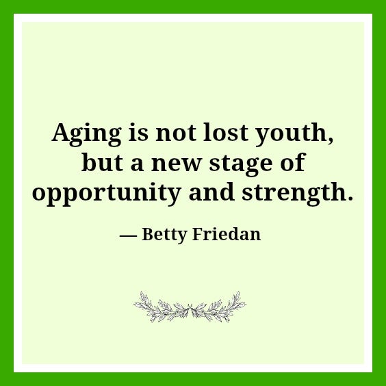 8. "Aging is not lost youth, but a new stage of opportunity and strength." —Betty Friedan