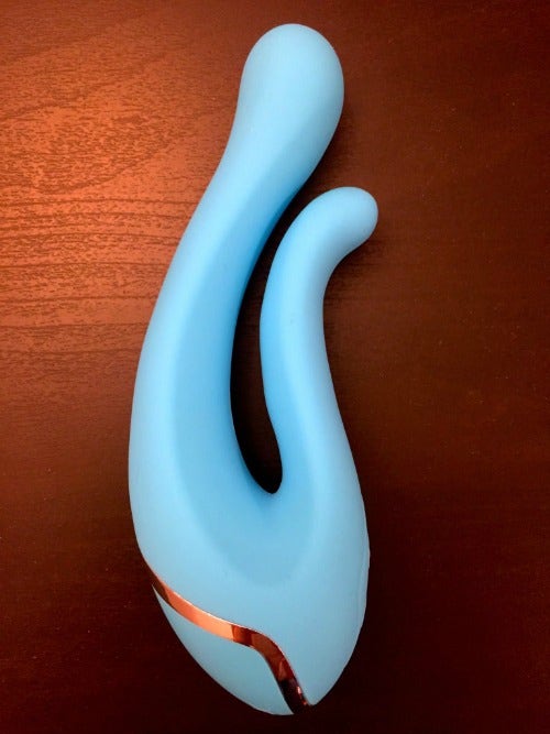 This toy surprised me in more ways than one. It has a unique shape, which works for my personal needs of both internal and external stimulation, with the bonus of a G-spot vibe. It has a variety of settings that are actual noticeable, complete with a non-offensive blinking light that mimics the vibrations. This toy was significantly better when used solo for masturbation than having a partner control it.