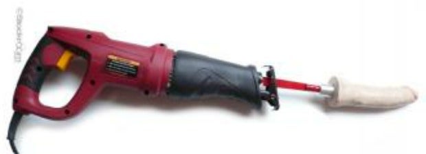 In the version you can purchase at a variety of stores online, the saw attachment has been removed, and the Saw Vac-U-Lock Adapter and dildo affixed to it is not sharp in any way, shape or form. Personally, I recommend buying the entire unit and using it only for the bedroom. No one wants a sawdust and dirt covered sawsall near their delicate lady parts.