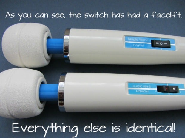 When the name changed from Hitachi Magic Wand to Original Magic Wand, the wand design stayed the same except for the button and front plate. This means an authentic Magic Wand manufactured recently will look slightly different than one you’ve had for a few years.