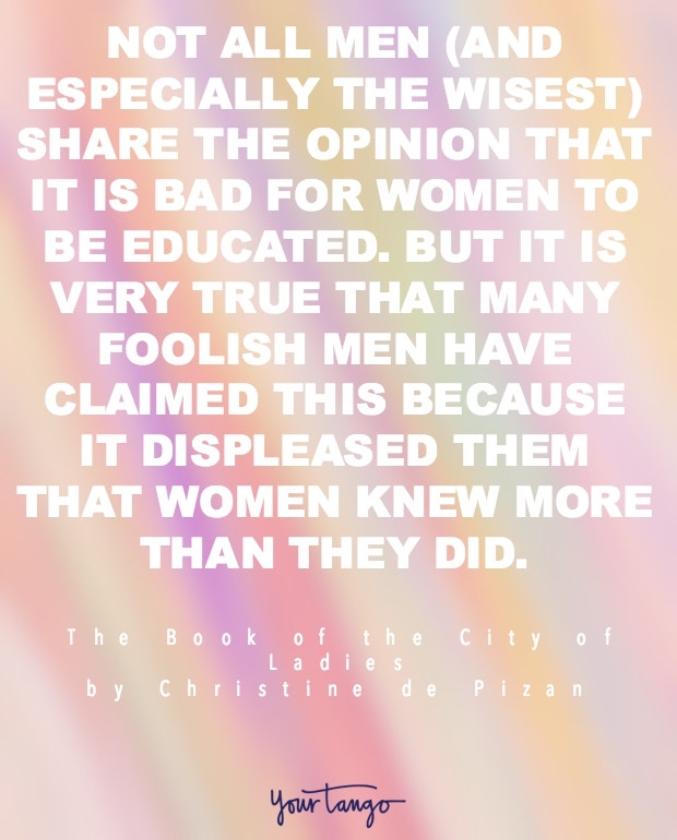 "Not all men (and especially the wisest) share the opinion that it is bad for women to be educated. But it is very true that many foolish men have claimed this because it displeased them that women knew more than they did."
