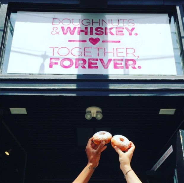 You get to pick from an insane number of delicious, sweet, gooey doughnuts, along with an optional shot of booze, because nothing says “classy” like drinking your whiskey through a doughnut.