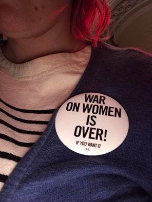 I’m wearing a t-shirt right now that says “War On Women Is Over If You Want It”.