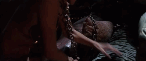 Carrie Fisher: "How about telling his daughter that the character is wearing that outfit not because she's chosen to wear it. She's been forced to wear it," Fisher advises. "She's a prisoner of a giant testicle who has a lot of saliva going on and she does not want to wear that thing, and it's ultimately that chain, which you're now indicating is some sort of accessory to S&M, that is used to kill the giant saliva testicle ... That's asinine."