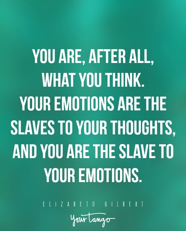 "You are, after all, what you think. Your emotions are the slaves to your thoughts, and you are the slave to your emotions."— Elizabeth Gilbert