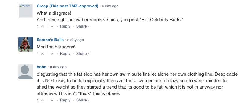 While TMZ's coverage of Ashley Graham in a swimsuit is awesome as hell, the comments are ... decidedly not so.