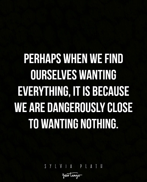 "Perhaps when we find ourselves wanting everything, it is because we are dangerously close to wanting nothing."