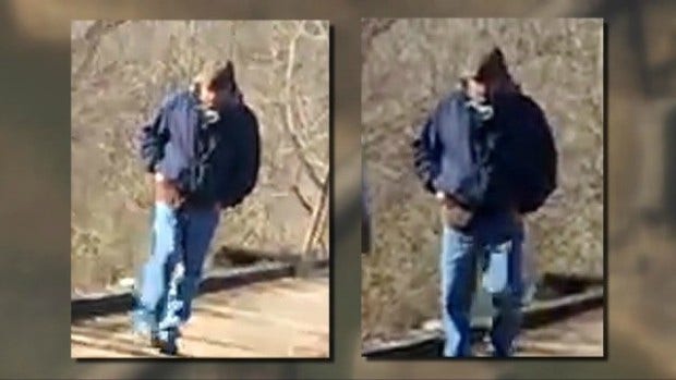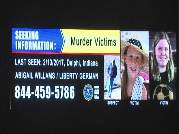 The only clues law enforcement released to the public were still images of a man on a bridge they believe to be the murderer (or one of the murderers) taken from Libby's phone and a sound bite of the same man saying calmly, "down the hill."