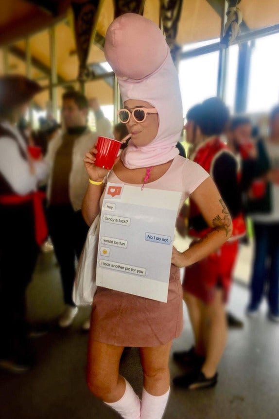But not this diva. She had the most epic costume idea ever: an unsolicited d*ck pic costume.