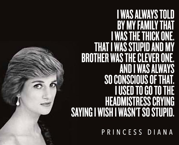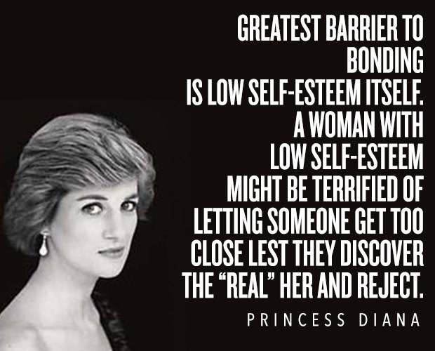 Shortly after she separated from Charles, she posted the following note-to-self on her desk at Kensington Palace: “Greatest barrier to bonding is low self-esteem itself. A woman with low self-esteem…might be terrified of letting someone get too close lest they discover the “real” her and reject.”