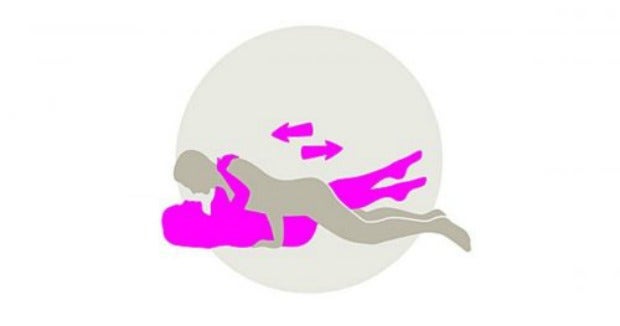 This is one of the best sex positions if your guy is a little too big for you, as he won’t be able to enter you quite as deeply. Once in the missionary position, have your guy turn to his side about 45 degrees so you’re lying diagonally from one another.