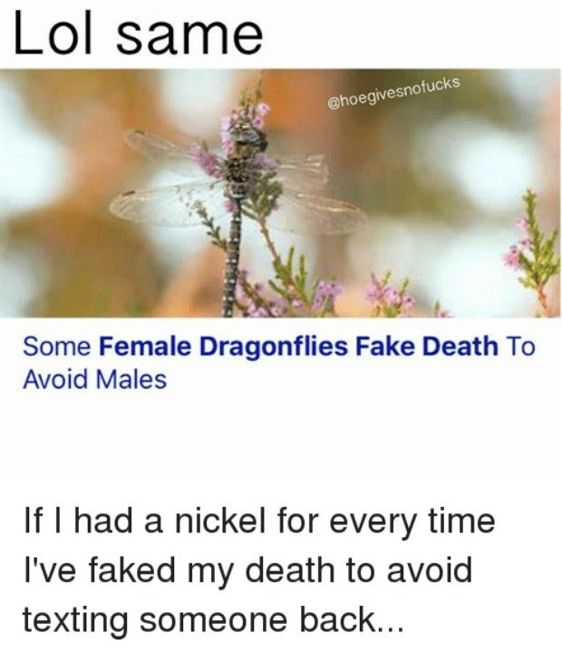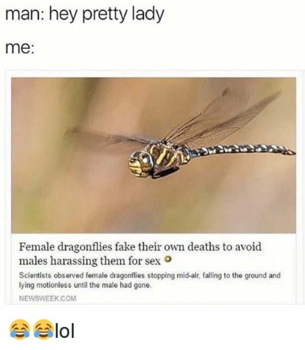 The female dragonfly quickly became a popular meme for males and females of our species alike.