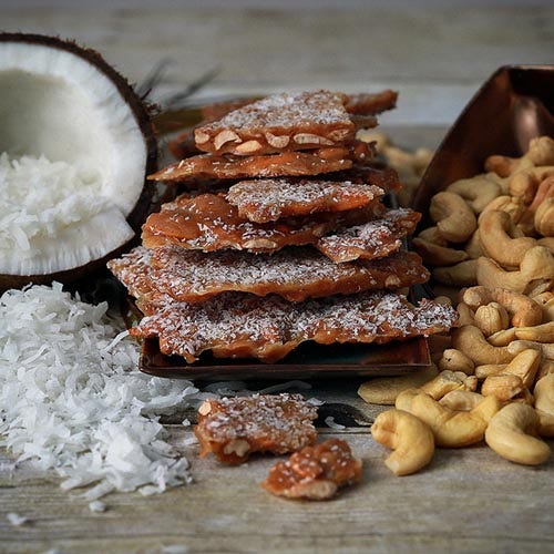 Cashews and coconut are cooked in small batches and hand stirred in copper kettles to a heavenly buttery crunch. Hilliards family brittle method may look a bit crazy, but it will make their next trip way more relaxed.