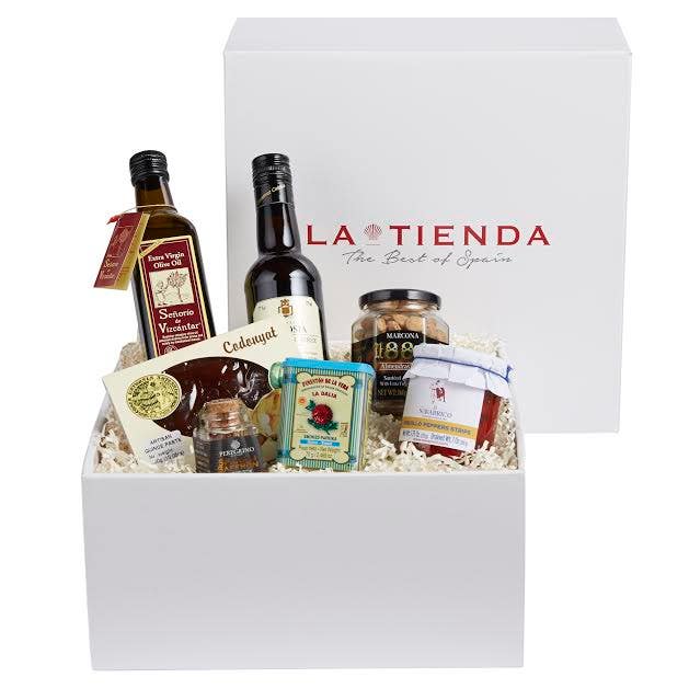 Cooking Spanish cuisine has never been more approachable. This attractive gift box is filled with seven staple items that evoke the distinct flavors of Spain, including intensely smoked pimenton de La Vera paprika, rich and crunchy Marcona almonds, wood-fire roasted piquillo peppers, sweet-tart membrillo quince preserve, solera aged sherry vinegar and extra virgin olive oil.