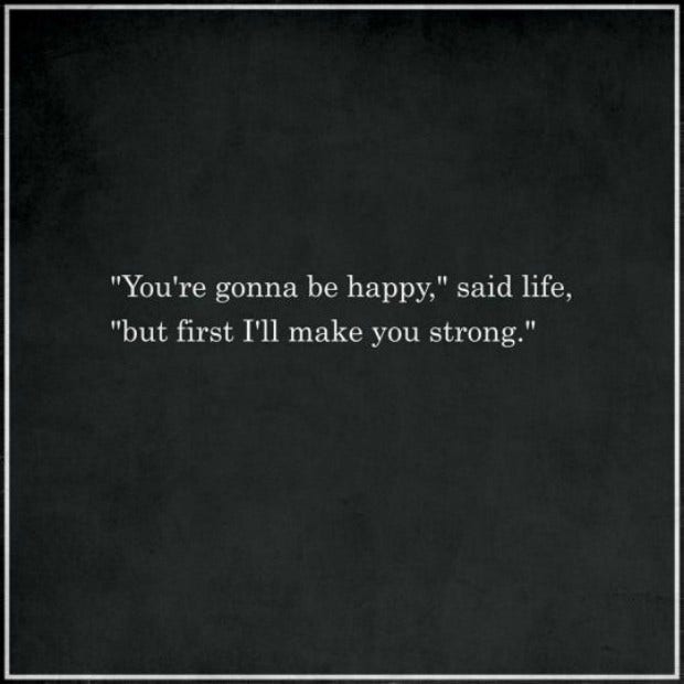 "'You're gonna be happy,' said life, 'but first I'll make you strong.'"