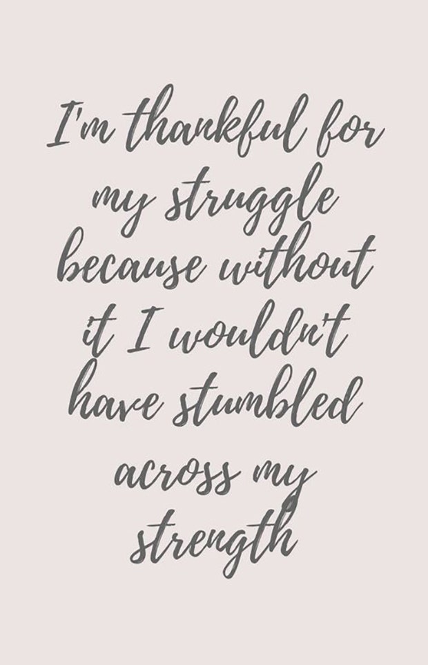 "I'm thankful for my struggle because without it I wouldn't have stumbled across my strength."