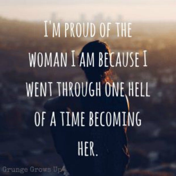 "I'm proud of the woman I am because I went through one hell of a time becoming her."