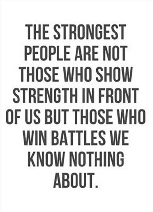 "The strongest people are not those who show strength in front of us but those who win battles we know nothing about."