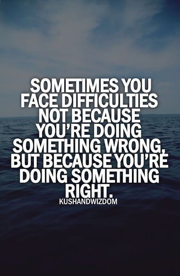 "Sometimes you face difficulties not because you're doing something wrong, but because you're doing something right."
