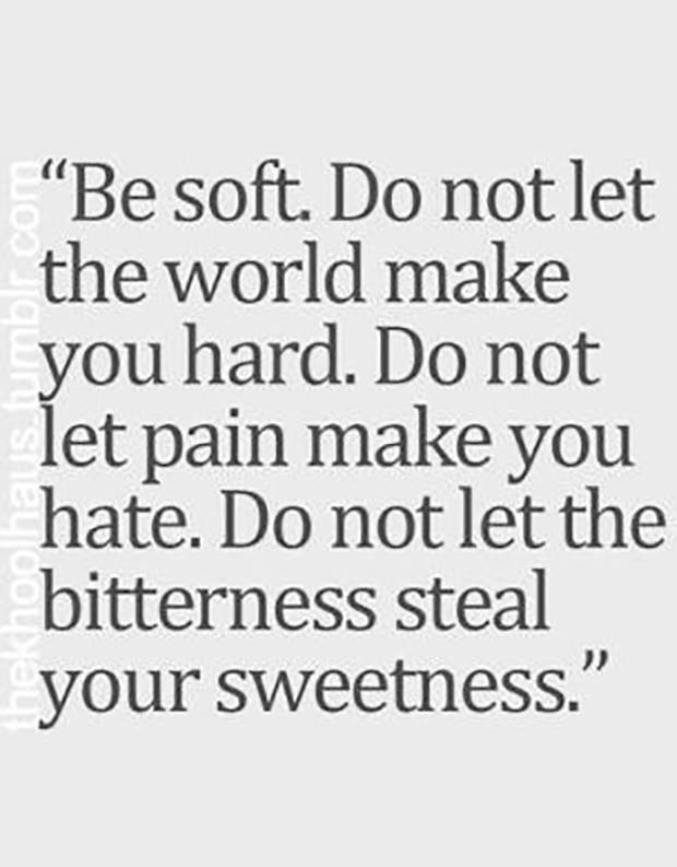 "Be soft. Do not let the world make you hard. Do not let pain make you hate. Do not let the bitterness steal your sweetness."