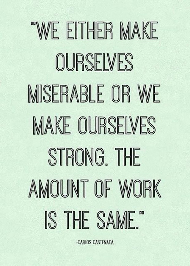 "We either make ourselves miserable or we make ourselves strong. The amount of work is the same." — Carlos Castenada