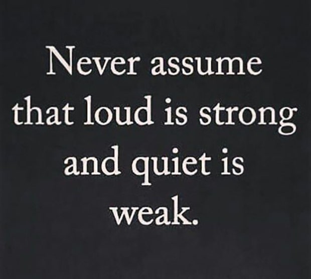"Never assume that loud is strong and quiet is weak."
