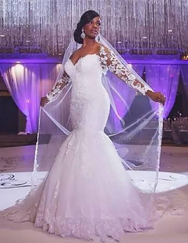 Trumpet/Mermaid off-the-shoulder long sleeve train. This dress will make you feel like a gorgeous mermaid with a lacy tail. Perfect if you want it to feel like a summer dream on the best day of your life.