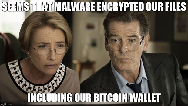 "Seems that malware encrypted our files including our bitcoin wallet"