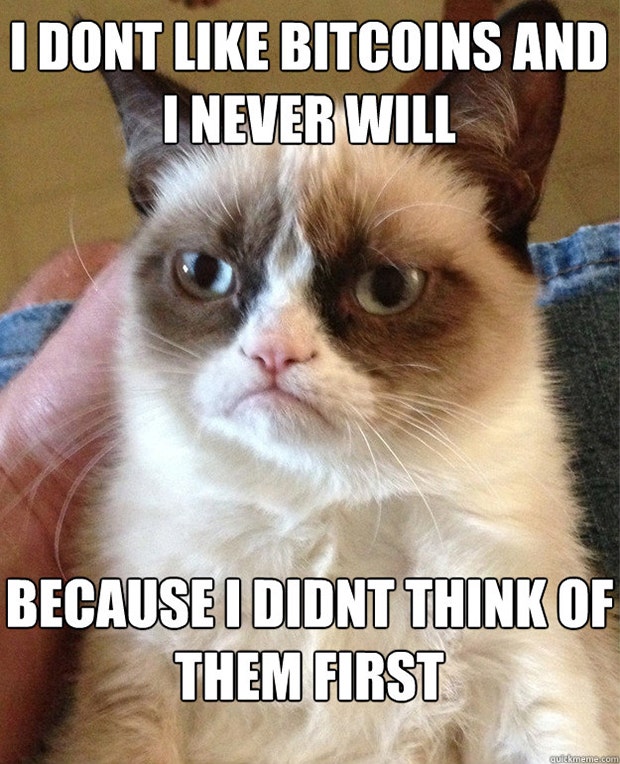 "I don't like bitcoins and I never will because I didn't think of them first."