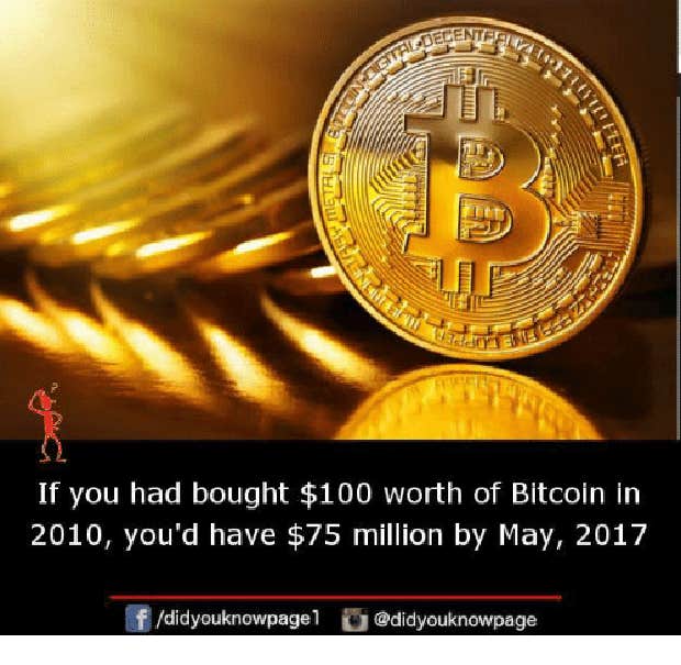 "If you had bought $100 worth of Bitcoin in 2010, you'd have $75 million by May, 2017"