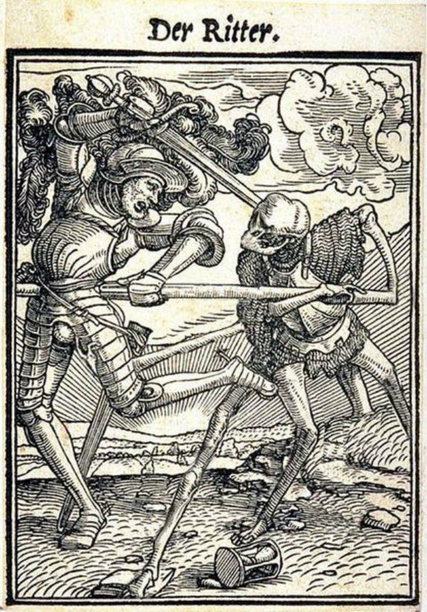 Hopefully the third time will be the charm here. Because, once again, he is NOT and he NEVER was. As revealed on Snopes, these "wood cuttings" are simply photoshopped versions of original wood block prints by the artist Hans Holbein, c. 1497.