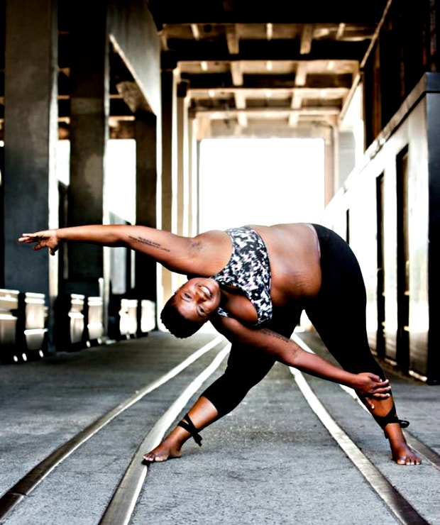 She's rocking body positivity, and it's a great look on her. She's a yoga teacher, and she encourages self-love while she shows others a variety of yoga moves that anyone can do. She gives you updates on when her classes are on sale.