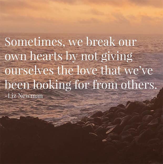 “Sometimes, we break our own hearts by not giving ourselves the love that we’ve been looking for from others.”—Liz Newman