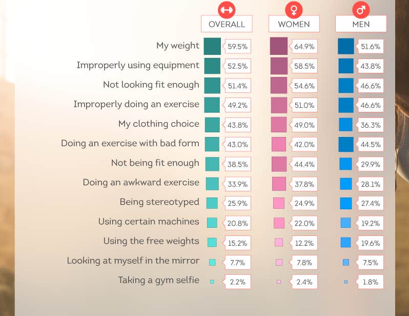 The fear of looking like a fool or doing the exercise completely wrong is enough to just avoid some machines altogether. Fifty-nine percent of women and around 44 percent of men said that the equipment is one of the biggest reasons they feel anxious at the gym.