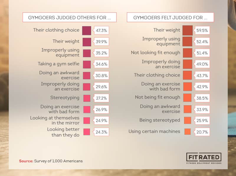 Fitrated.com surveyed 1,000 Americans to get their thoughts and feelings on being judged at the gym. They asked surveyors what they felt put-off by and what they thought people were looking down at them for.