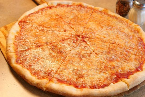 1. Plain cheese, thin crust and red sauce with garlic powder and black pepper (and lots of it).