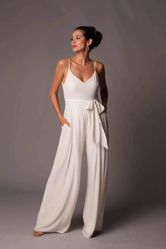If you absolutely love the idea of pantsuit wedding dresses and want some inspiration, you're in luck! Here are some ideas to get you started and find the bridal jumpsuit of your dreams.