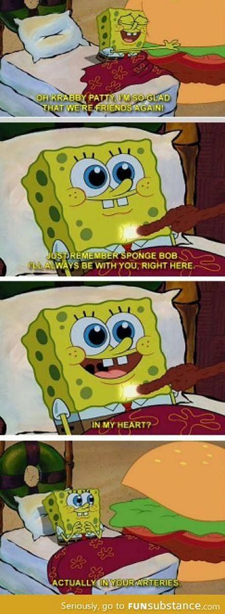 Giant Krabby patty:“Just remember, SpongeBob. I’m always in here.”